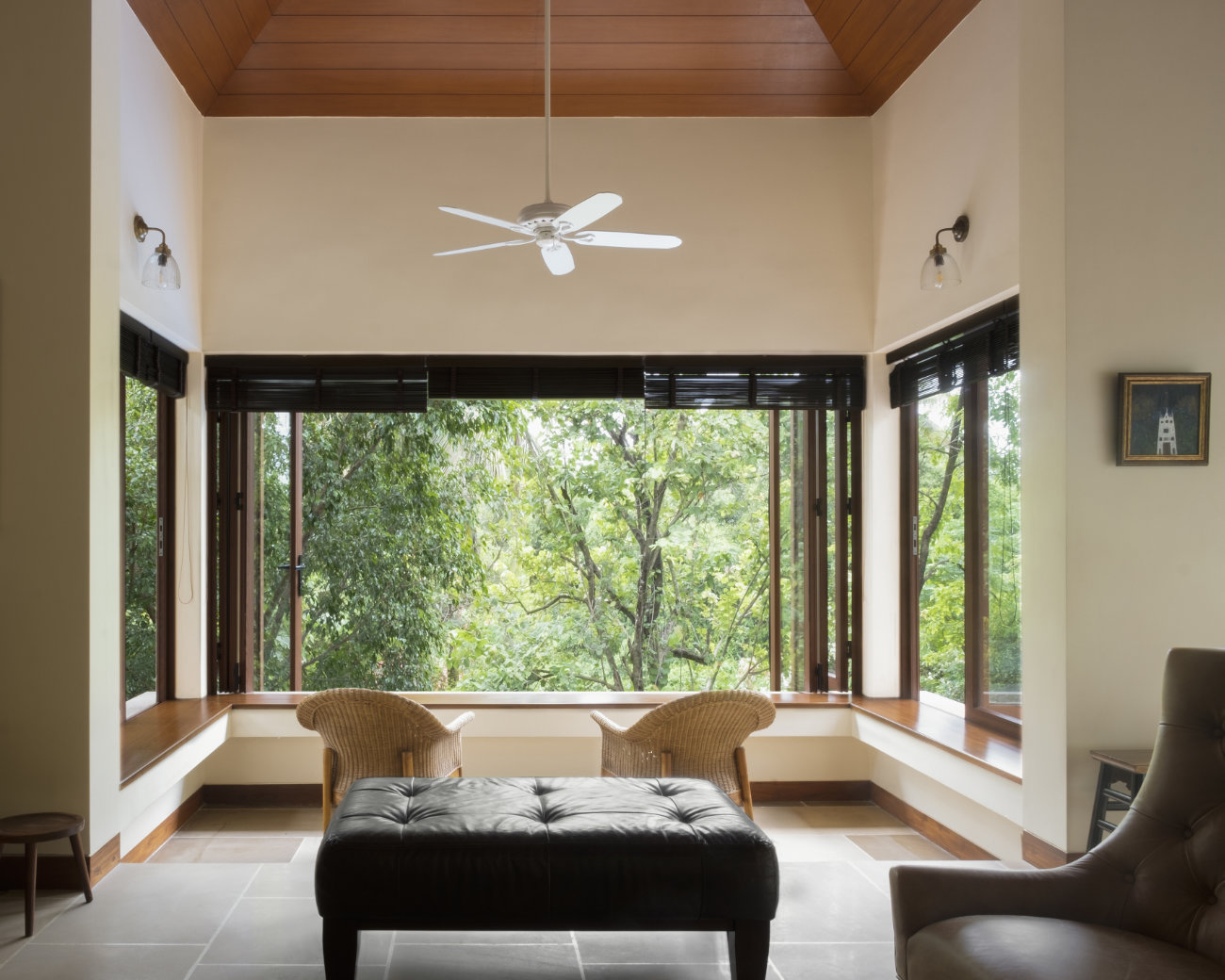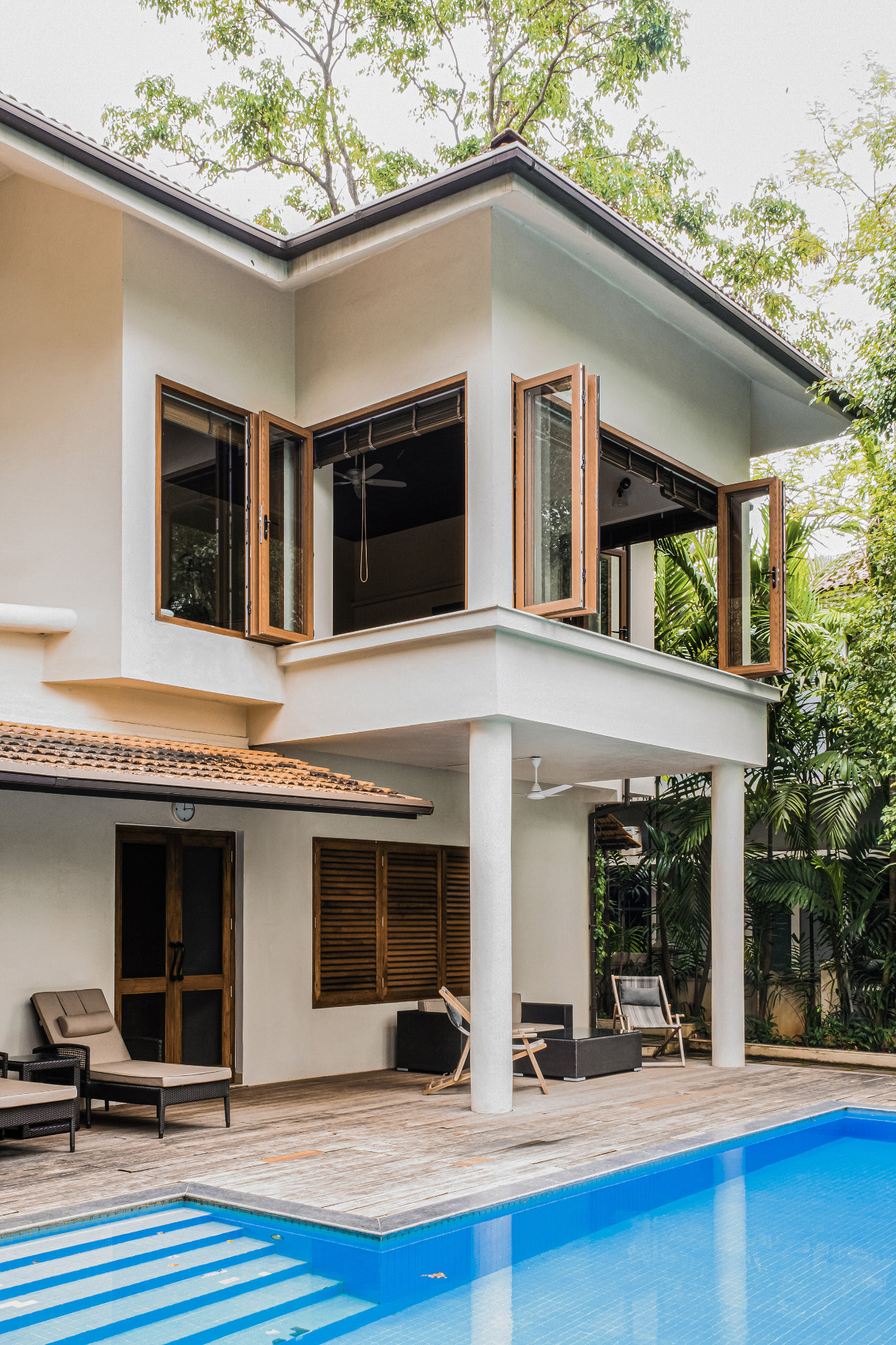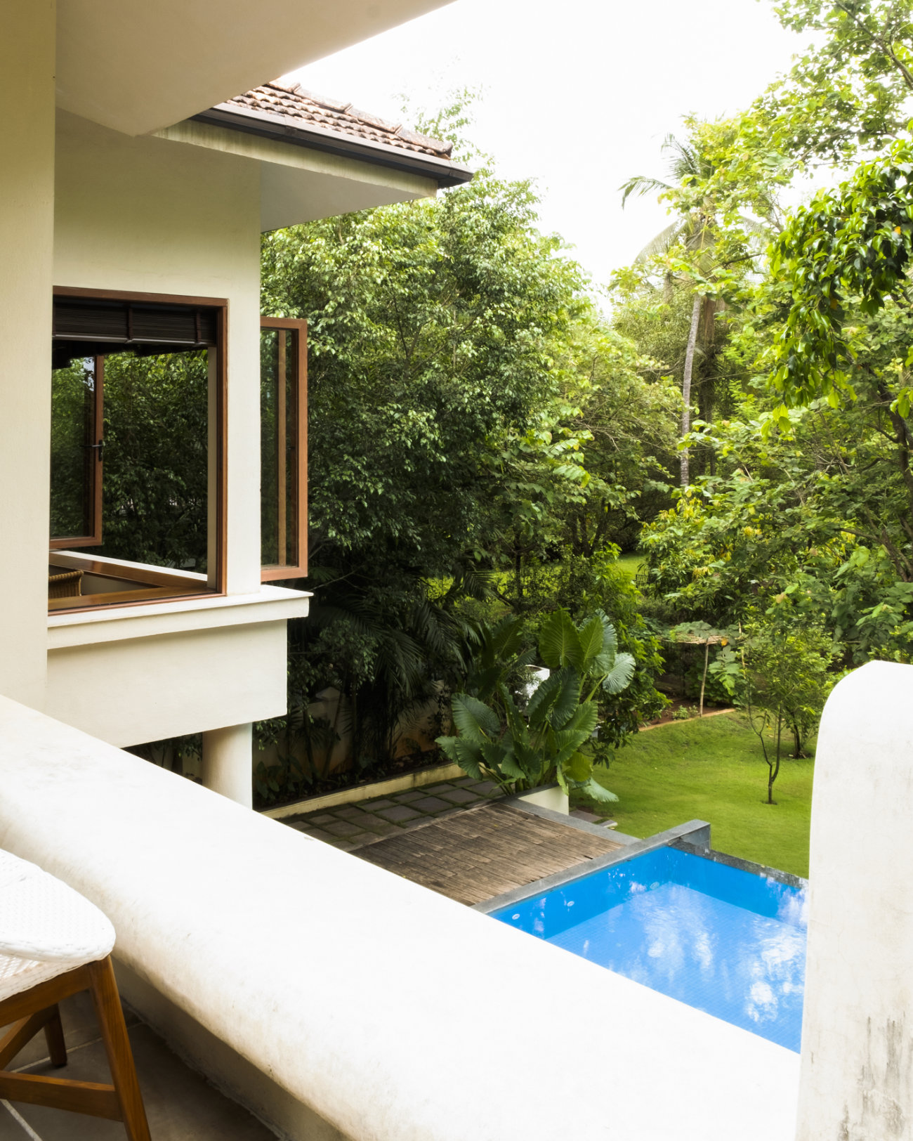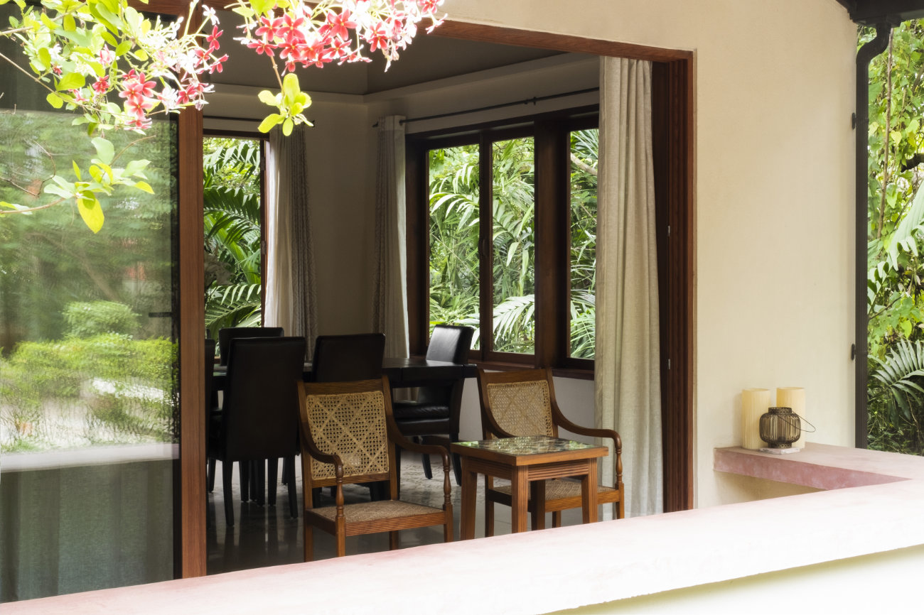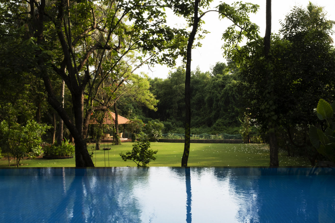 This residence located in Moira is an understated modern Goan home. Breaking all the conventions of a typical home, the common spaces are on the Upper level where as the private spaces like bedrooms and study are on the lower level. The house is placed towards the village road where as the pool and the garden are at the rear adjoining the Moira river.
